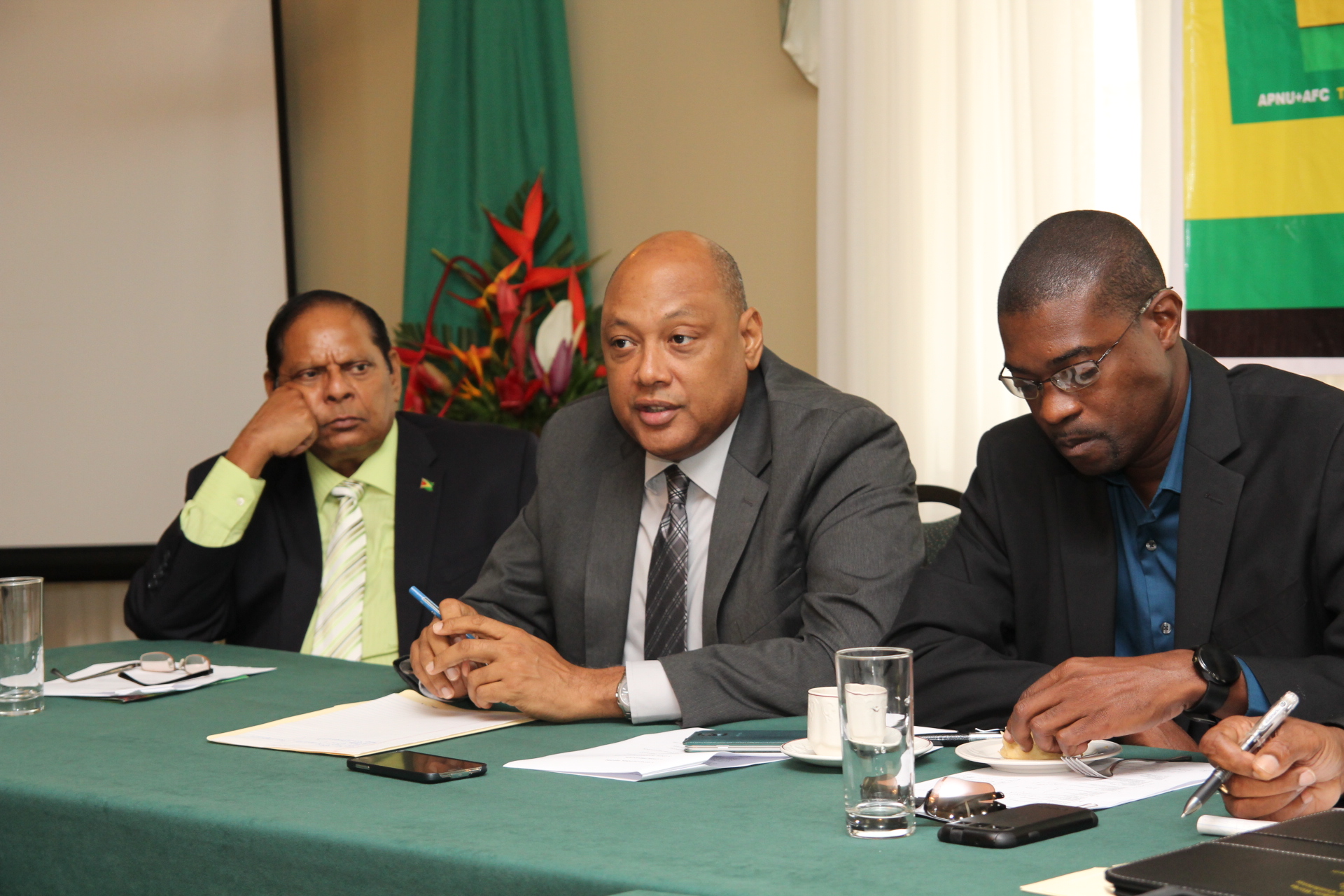 Prime Ministerial Candidate Moses Nagamootoo led the APNU+AFC delegation which included Campaign Co-Chairs Joe Harmon and Raphael Trotman, Cathy Hughes, AFC General Secretary David Patterson. The meeting took place at Cara Lodge Hotel in Georgetown.
